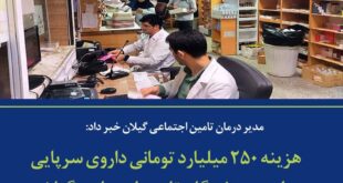 بیشتر بخوانید »مدیر درمان تامین اجتماعی گیلان خبر داد: هزینه ۲۵۰ میلیارد تومانی داروی سرپایی برای بیمه شدگان تامین اجتماعی گیلان