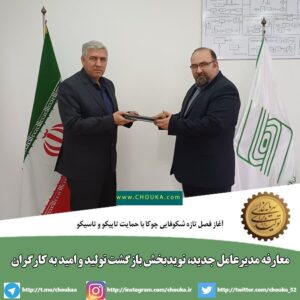 در این مراسم، امیرعلی نصیری به‌عنوان مدیرعامل جدید شرکت چوکا معرفی شد؛ مدیری برخاسته از خانواده چوکا که سابقه حضور و شناخت عمیق از ظرفیت‌ها و چالش‌های این مجموعه بزرگ صنعتی را در کارنامه خود دارد. این انتصاب، به‌عنوان گامی مهم در مسیر تثبیت ارکان مدیریتی و آغاز دوره‌ای تازه از احیا و شکوفایی چوکا مورد تأکید قرار گرفت.