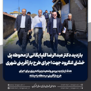 ▫️در ادامه این بازدید، مهندس کاظمی نیز با اشاره به تعاملات مستمر با نهادهای دولتی برای اجرای طرحهای بازآفرینی، از آمادگی شهرداری لنگرود برای همکاری کامل در این پروژهها خبر داد و ابراز امیدواری کرد که این طرحها با سرعت و کیفیت بالا به بهرهبرداری برسد.