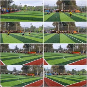 بازی دوستانه و نمادین فوتبال توسط نوجوانان در آغاز بهره برداری از زمین چمن مصنوعی پارک گلستان املش