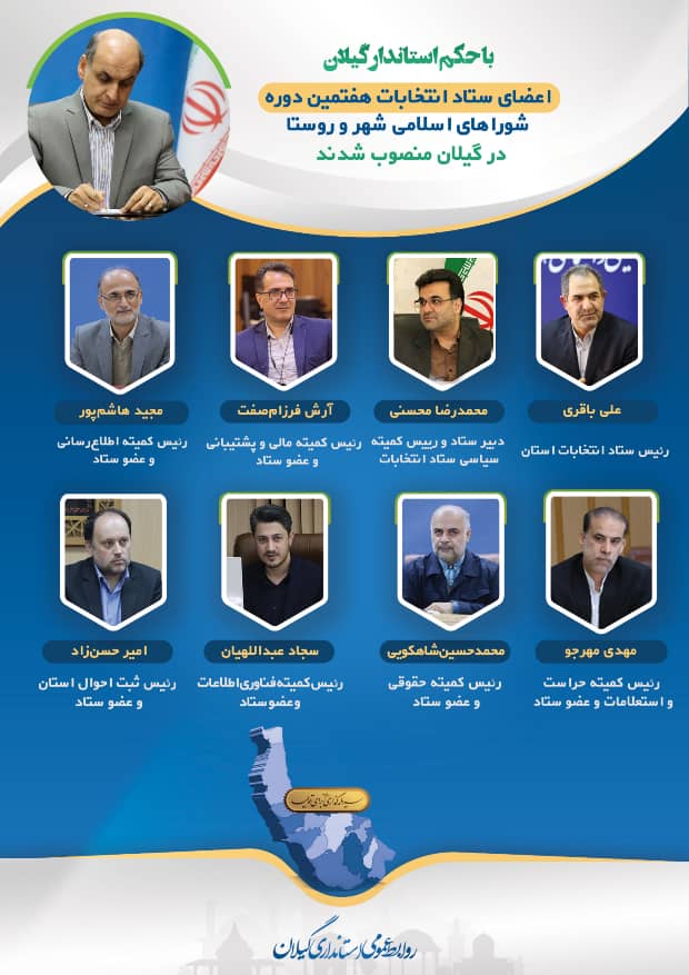 همای خبر_ استاندار حق شناس طی احکامی علی باقری را به سمت رئیس ستاد انتخابات هفتمین دوره شوراهای گیلان و محمدرضا محسنی را به عنوان دبیر ستاد انتخاباتی این دور هفتم شوراها را منصوب کرد.