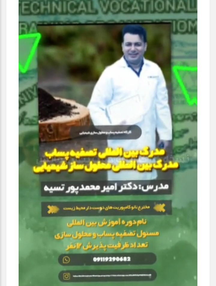 دوره آموزش تصفیه پساب با مدرک بین المللی در مرکز آموزش فنی و حرفه ای انصاری رشت
