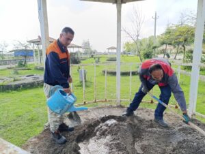 ترمیم آلاچیق های طرح سالمسازی دریای چمخاله توسط پرسنل زحمتکش واحد عمران و تاسیسات شهرداری چاف و چمخاله