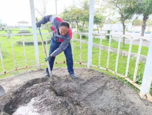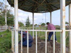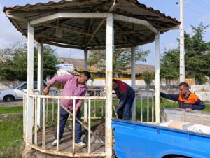 ترمیم آلاچیق های طرح سالمسازی دریای چمخاله توسط پرسنل زحمتکش واحد عمران و تاسیسات شهرداری چاف و چمخاله