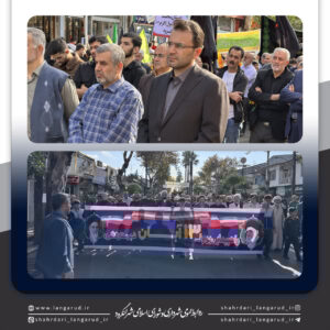 به گزارش روابط عمومی شهرداری و شورای اسلامی شهرلنگرود ، شهردار و اعضای شورای اسلامی شهر لنگرود با حضور در راهپیمایی ۱۳ آبان، از مشارکت پرشور مردم شهیدپرور و دانشآموزان این شهر در گرامیداشت این روز تاریخی حمایت کردند.