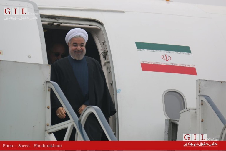 همای گیلان: دکتر حسن روحانی صبح امروز وارد فرودگاه سردار جنگل شد و مورد استقبال مسئولین استان گیلان قرار گرفت. پرواز رئیس جمهور به دلیل مه گرفتگی شدید با تاخیر نود دقیقه ای همراه بود.