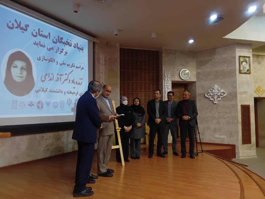 به همت بنیاد نخبگان گیلان و با حضور استاندار گیلان و هیات همراه و حضور دکتر روحانی نماینده انستیتو پاستور ایران مراسم بزرگداشت دانشمند بانوی گیلانی زنده یاد آذر اندامی در تالار حکمت دانشگاه گیلان برگزار شد.