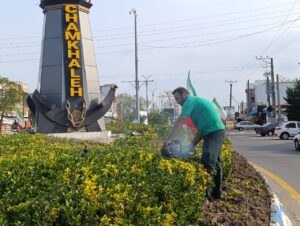 توسط نیروهای زحمتکش واحد فضای سبز شهرداری چاف چمخاله
