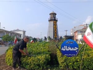 هرس کردن درختچهها و گل ها در سطح شهر چاف و چمخاله