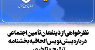 Read More »نظرخواهی از ذینفعان تأمین اجتماعی درباره پیشنویس الحاقیه بخشنامه تنقیح و تلخیص ضوابط بیمهای مقاطعهکاران