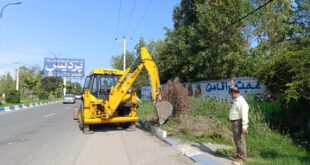 تسطیح حاشیه کنار بلوارهای جاده اصلی چمخاله به چاف توسط واحد خدمات شهری شهرداری چاف و چمخاله